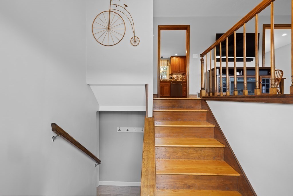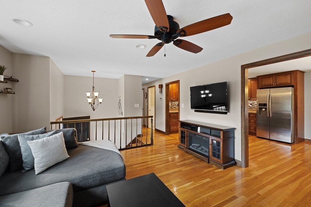 ***OH Sat & Sun 11-1*** This beautifully maintained, 3 bed/2.5bath TURNKEY split level is located on a quiet Stoughton cul-de-sac. Roof, HVAC, siding, flooring, windows + electrical all re-done in the last 8 years, along w/upgrades galore in the open kitchen/dining area (stainless steel, granite, undercabinet lighting!) + 2.5 baths. Sliders to composite deck w/paver patio + firepit in super-private, extendable backyard. One-car garage under + expanded driveway for additional cars. 3 roomy bedrooms w/extras like a custom barn door on the primary closet, ceiling fans, & glossy hardwoods. Bright lower level has large family room w/new gas fireplace insert, stunning full bath w/roll-in shower, laundry room w/storage, electrical room, & garage access. Perfectly situated a stone's throw from Crescent Ridge farm, just 1mi from all the conveniences of Cobb's Corner shops & restaurants, & 2mi from the Canton Center commuter rail, in the Hansen school district. Shown all weekend