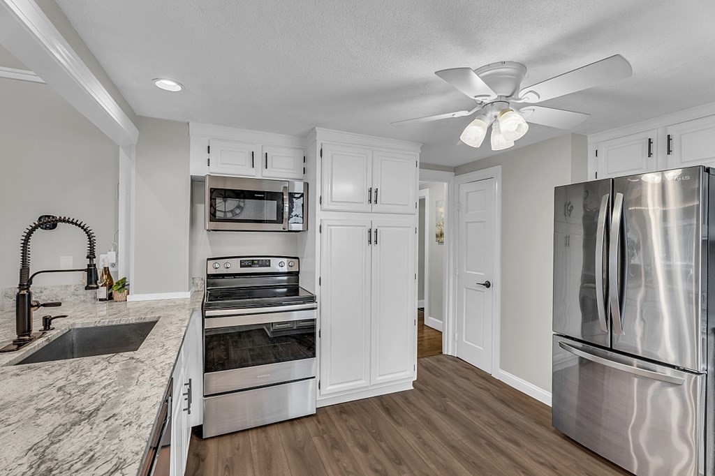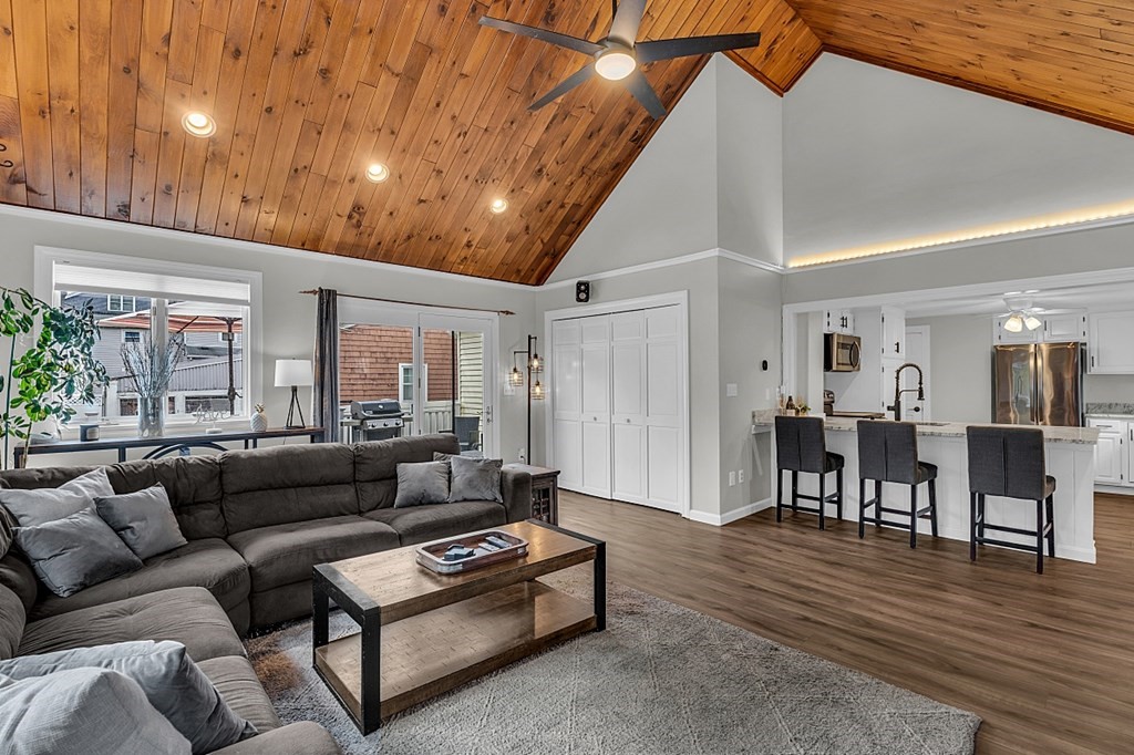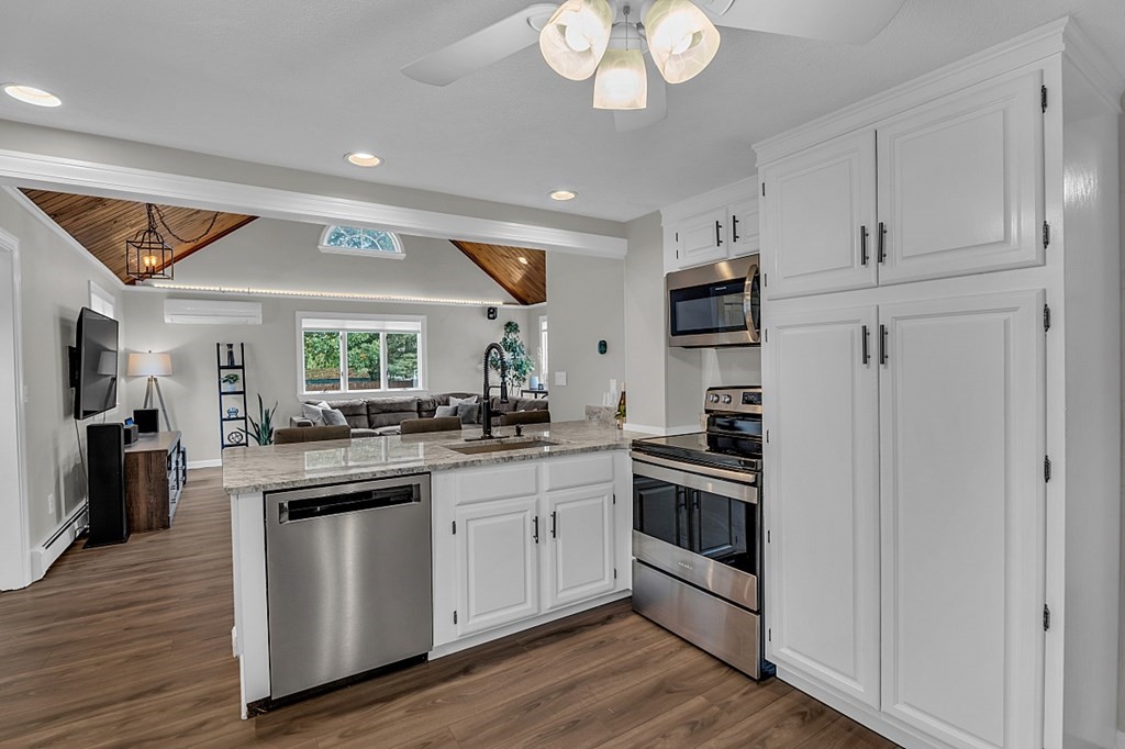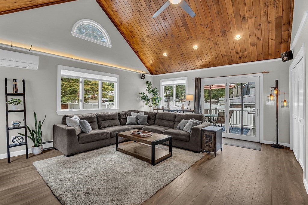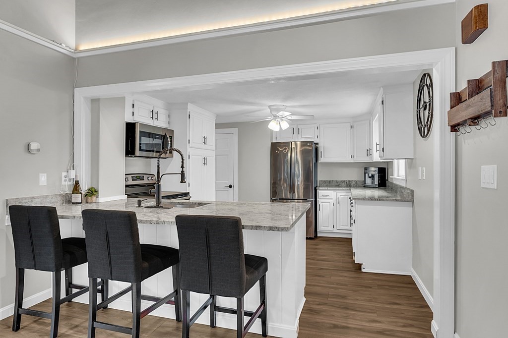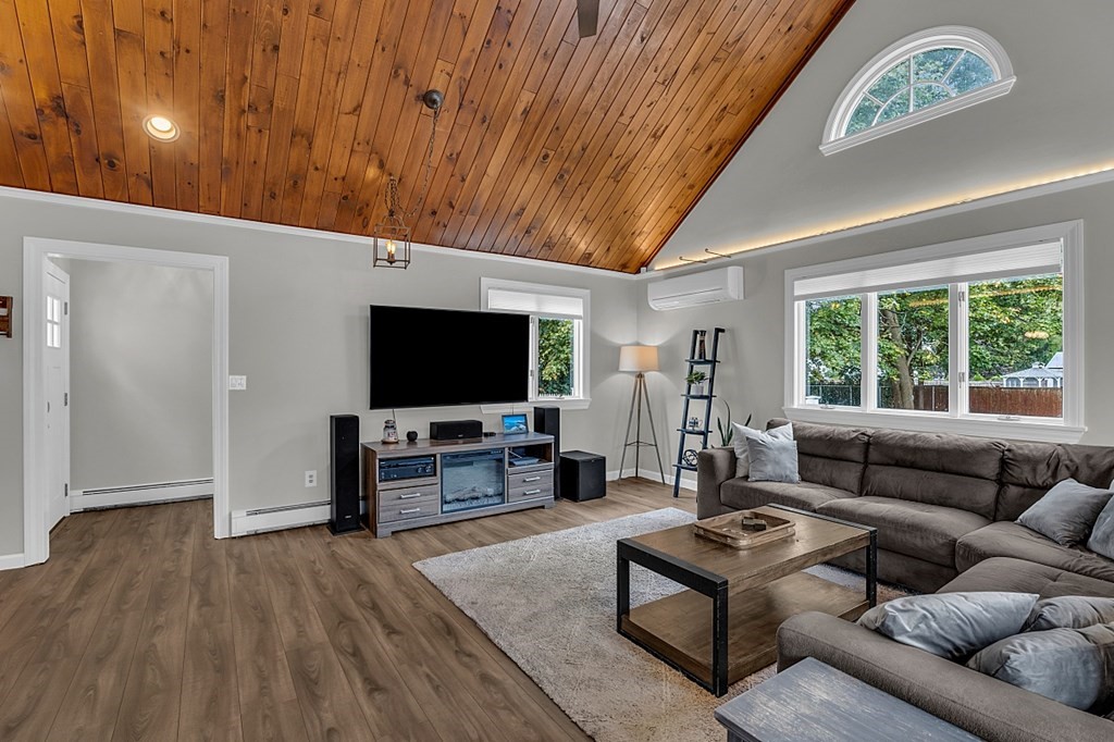 Be prepared to fall in love with this Woburn gem! Upon entering your mudroom, you will be in awe by the vaulted ceilings and abundance of natural light in the great room. An entertainers dream, this space is perfect for hosting with direct access to your large composite deck leading to your flat, fully fenced yard. The great room flows into the updated kitchen complete with granite countertops and stainless appliances. The main floor has a flexible floor plan with an oversized dining room, 3 season sun room, full bathroom, generously sized primary bedroom, and an additional room leading to the second floor- perfect for an office or play room! The second floor features two additional bedrooms and ample closet space. The bonus space in the basement is waiting to be filled with new memories made! With convenient access to 93 & 95, commuter rail, express bus to Boston & recreation right around the corner like the Tri-Community Greenway and Woburn’s own brewery- all that is missing is you!