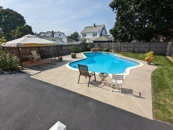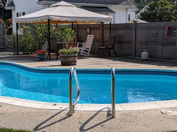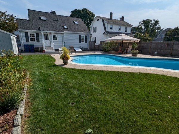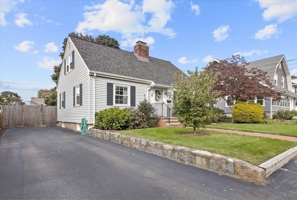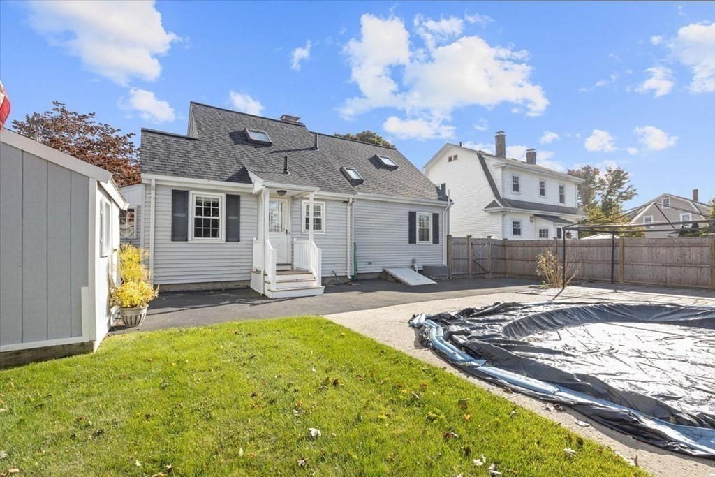 This perfectly charming Cape with potential for a generational suite is the one you've been looking! The current owners raised their family in this sweet well-cared for home for many years & now it's time for you to make it yours. Enjoy the fireplaced living room w/custom shelves & cabinets & a picture window to let in natural light. The bright sunroom w/skylight off the eat-in kitchen is a great place to start your day w/coffee. Two large BRs are on the 2nd floor w/skylights. A 1st floor BR could be used as a den or office. The fenced backyard featuring a gorgeous inground pool & gazebo will be your own oasis—perfect for entertaining during those long summer evenings. Central A/C, too! There's even a shed for your summer toys & pool eqpt. HW floors throughout (some under carpeting). Located in a desirable neighborhood, it's convenient to transportation & shopping, as well as parks & schools. No landscaping needed as lovely flowers and mature plantings are already here!