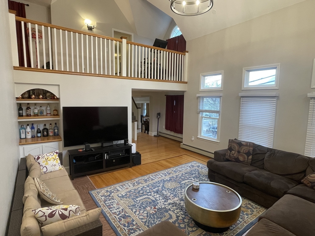 Discover the perfect blend of urban convenience and suburban tranquility in this pet-friendly haven located in Medford's Fulton Heights. Minutes to Assembly Row & Downtown Boston, this spacious home offers seamless access to city amenities while providing a serene living environment. Step into the expansive, tiered outdoor space featuring a wonderful yard, deck, and stone steps, ideal for outdoor gatherings and relaxation. The interior boasts a stunning living room with impressive 18-ft ceilings and a balcony overlooking it, creating a dramatic yet inviting ambiance. Enjoy the convenience of 2 newly renovated full baths, a brand-new electric fireplace, new window blinds, & the eco-friendly touch of solar panels on the roof. The refinished play area in the basement adds versatility to the home, catering to various lifestyle needs. With access to public transportation nearby, this home offers the best of both worlds: urban connectivity and suburban tranquility. Schedule your viewing toda