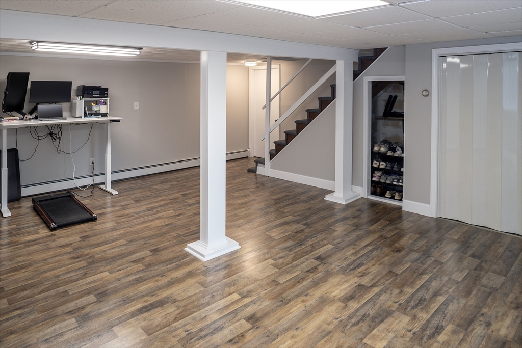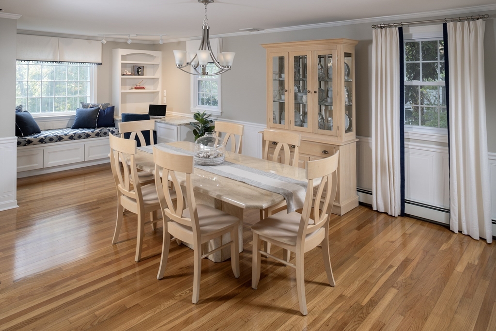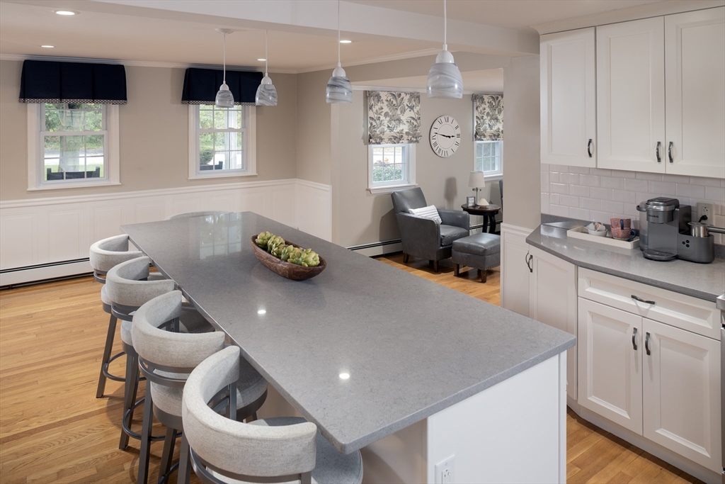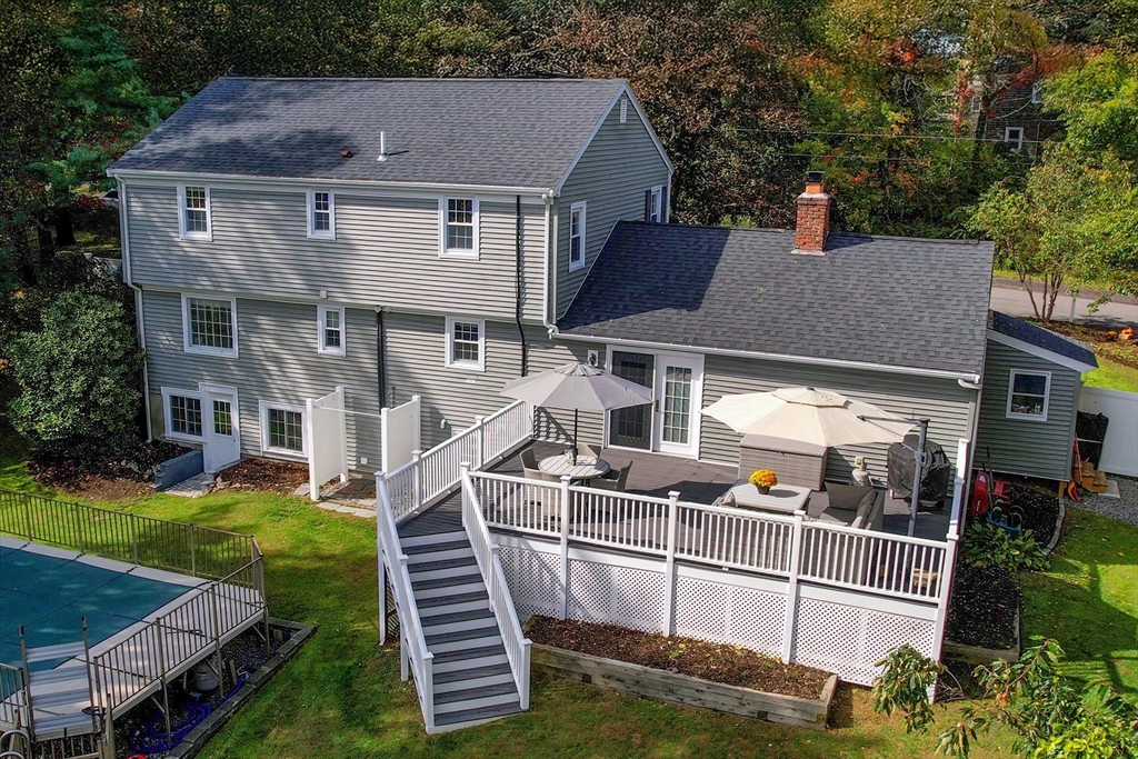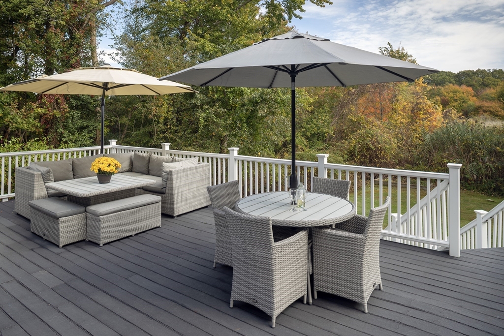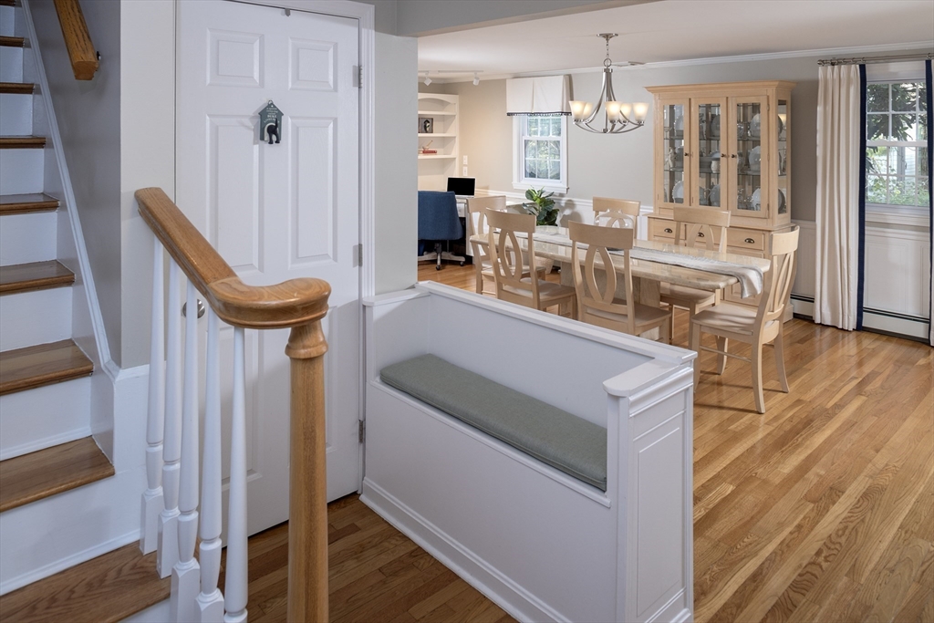 From the moment you cross the threshold, the custom design work shines. Hardwood floors throughout. The lower level was reconfigured in 2019 for modern living. The staircase was widened, and a custom bench added to create a mini mudroom. The former living room was transformed into a dining area with a built-in office and reading nook. The thoughtfully updated kitchen features quartz countertops, a water spigot for pasta, soft-close drawers, stainless appliances, and a large island with a beverage fridge and seating for five. The adjoining family room offers a gas fireplace with a custom mantle, & french door to the large composite deck overlooking the Daniel Webster Wildlife Sanctuary. Additional highlights include custom closet in the primary bedroom, updated baths, a 2019 roof, central air, a Navien furnace (2024), irrigation, an outdoor shower, a finished walkout basement, stamped concrete retaining walls (2025), and a shed with electricity. Stylish, functional, and move-in ready.